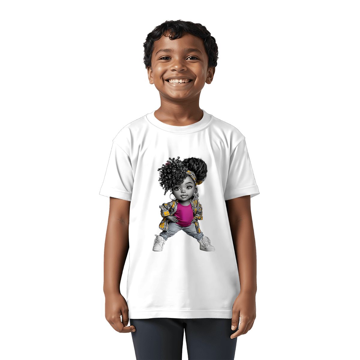 Grandparents know that confidence is one of the greatest gifts we can pass on. The Afro Princess Swag Youth T-Shirt does just that—celebrating Black Girl Magic with a striking design of a little girl in curls, sneakers, and bold fashion. Her stance says it all: I know who I am, and I’m proud of it.