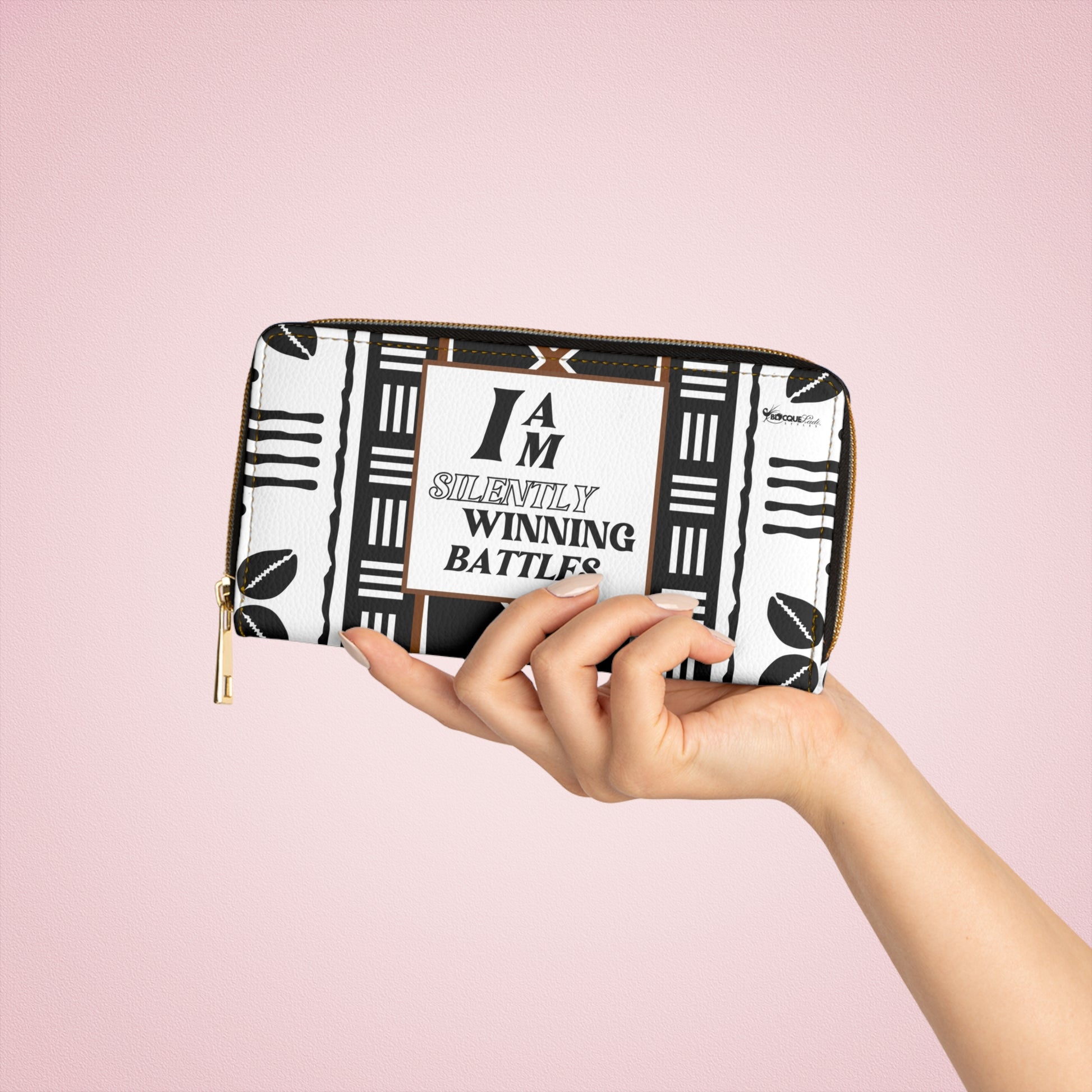Our “I AM SILENTLY WINNING BATTLES” Afrocentric Affirmation Wallet is more than an accessory—it’s a daily declaration of inner resilience and grace under pressure. Designed for women navigating life with quiet determination, this wallet is a stylish, soul-centered companion on your healing journey.