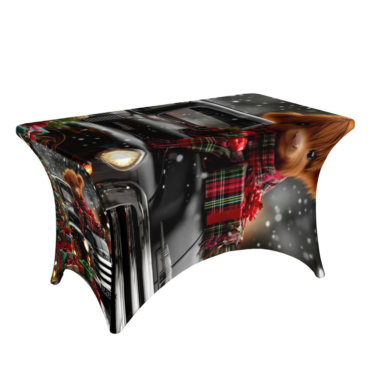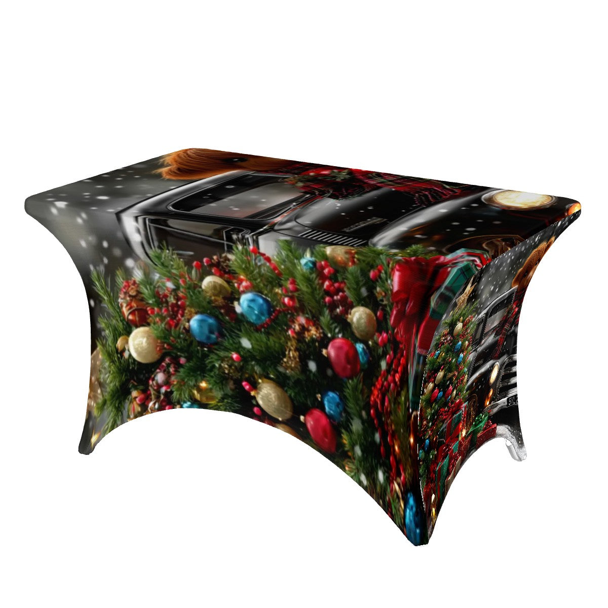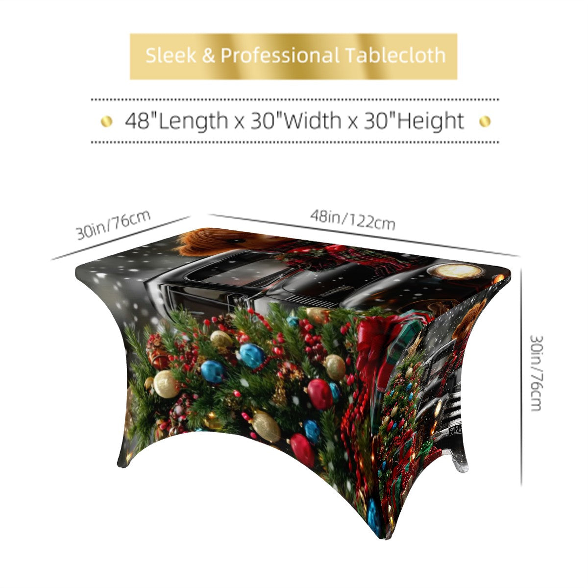 Christmas Table Cover | Vintage Truck with & Tree | 4ft Holiday Stretch Tablecloth