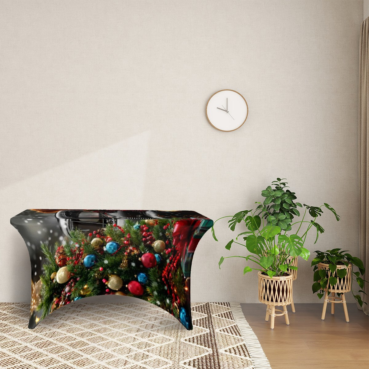 Made of a stretchy polyester-spandex blend, it fits snugly over your 4ft rectangular table, resists wrinkles, and protects your surface during gatherings. Perfect for family dinners, holiday parties, seasonal craft fairs, and Christmas markets.