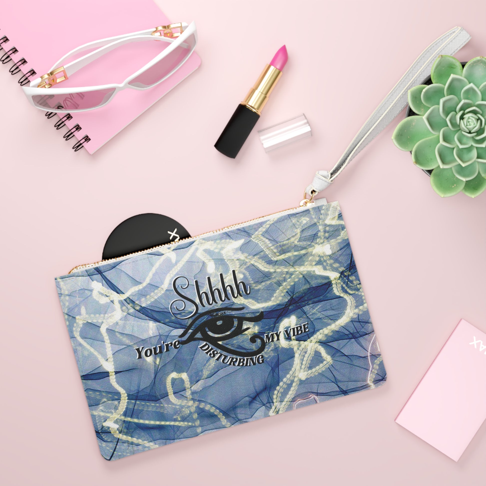 Protect your peace in color. The “Shhhh, You’re Disturbing My Vibe” Clutch is a powerful visual affirmation wrapped in high-end vegan leather. This bold wristlet features the Eye of Horus, reminding you to guard your energy while turning heads with Afrocentric style.