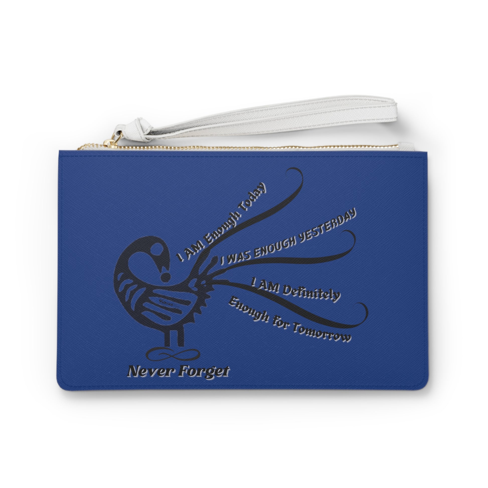 I AM More Than Enough- Positive Afrocentric Affirmation Vegan Leather Clutch Bag- Empower Your Style and Self-Love; Blue Clutch