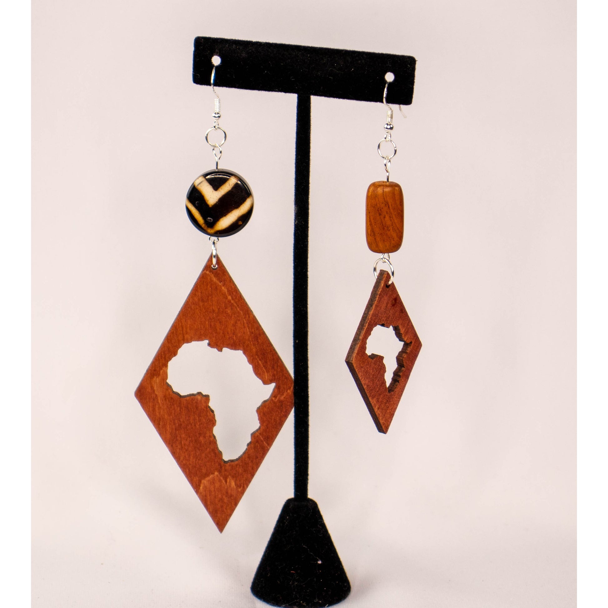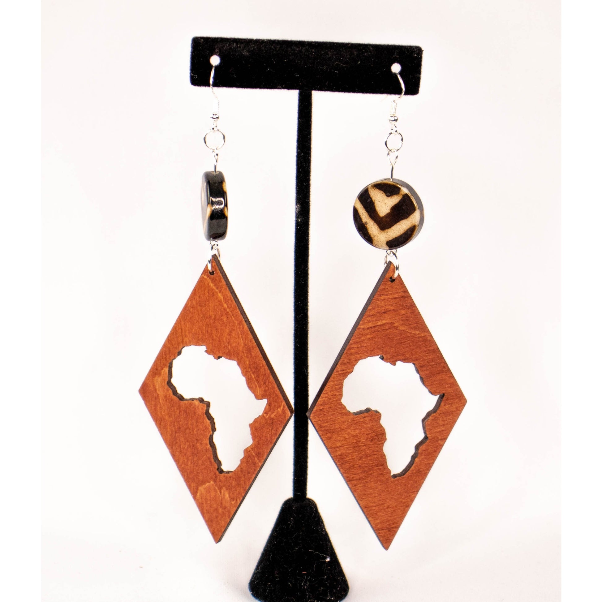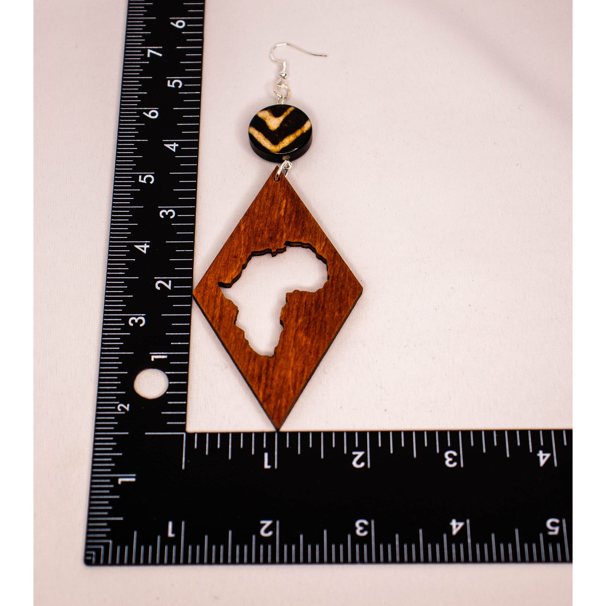 Diamond Africa Cut-out Wood Geometric Dangle Earrings