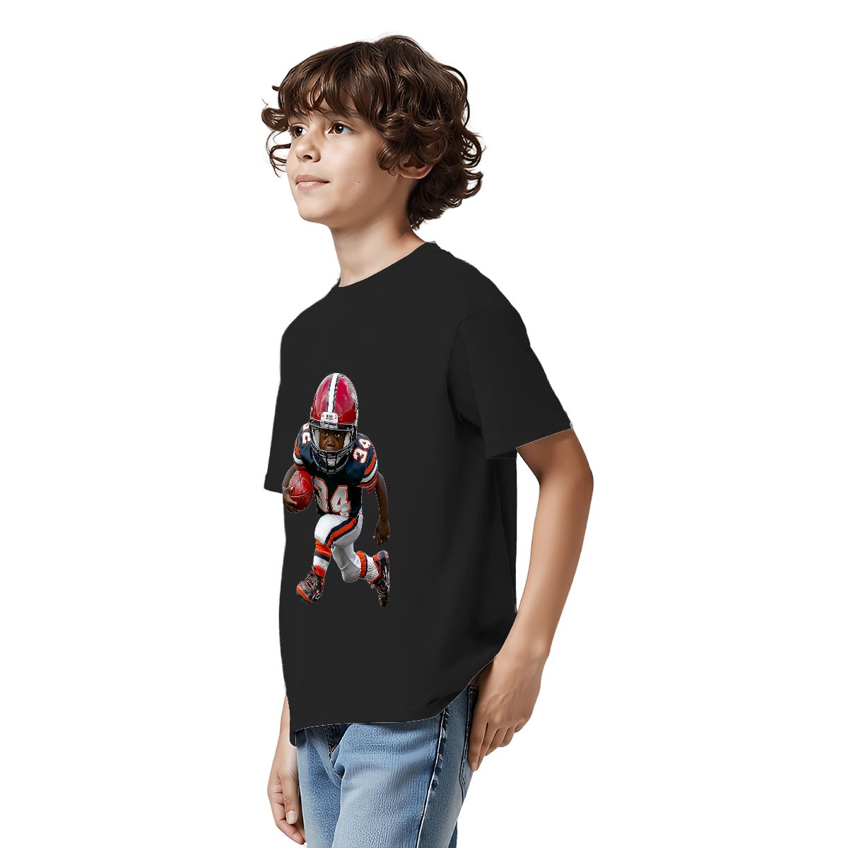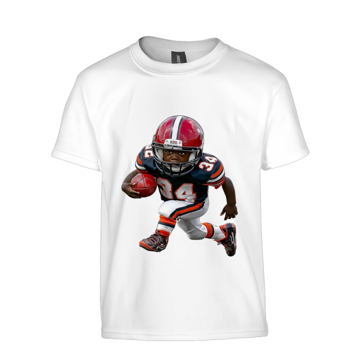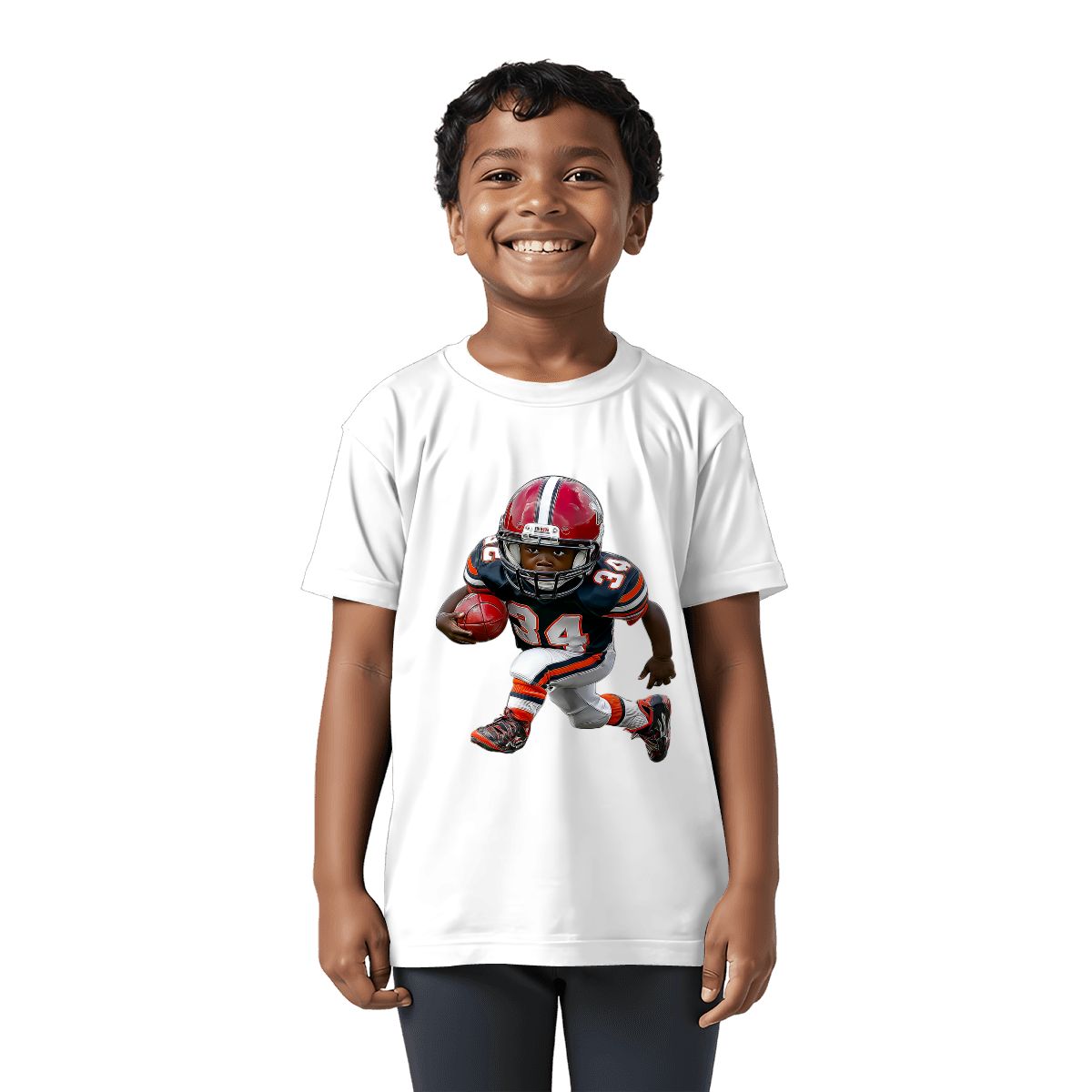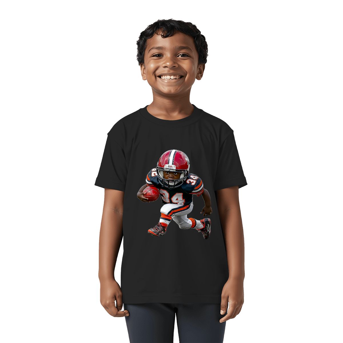 Every legend leaves a number behind. For Walter “Sweetness” Payton, that number was 34—a symbol of excellence, perseverance, and humility with the Chicago Bears. This Future Hall of Famer Youth T-Shirt proudly honors that legacy with a bold design of a young boy charging forward in a #34 football jersey, football in hand, determination in his eyes.